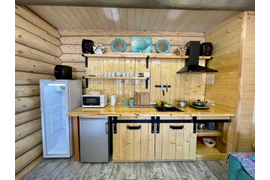 У дома имеется большая уличная веранда , где может разместится большая компания